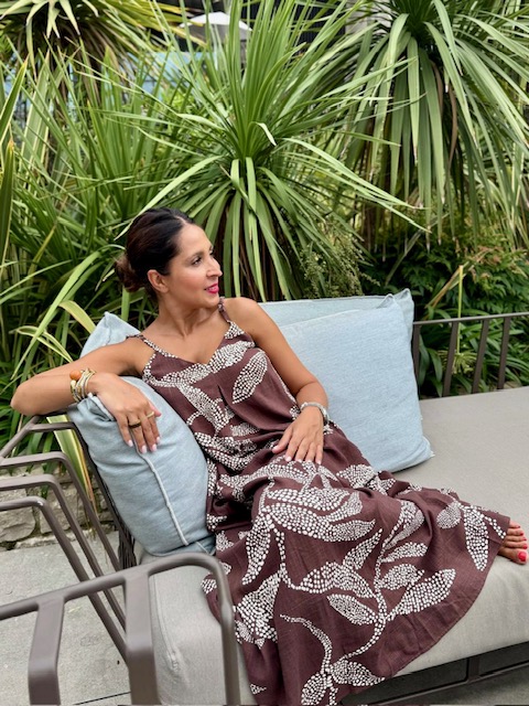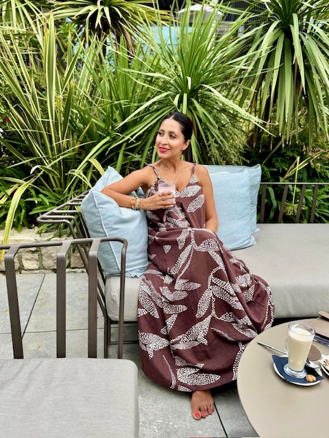 Der weiche Stoff fällt fließend, umschmeichelt jede Bewegung und lässt das Kleid mit dem Körper arbeiten – leicht, elegant und unaufdringlich. Die warme Farbe strahlt Ruhe aus, während die Silhouette zeitlos wirkt. Dazu kombiniere ich dezenten Schmuck – und schon entsteht ein Look, der gleichermaßen lässig und elegant wirkt.